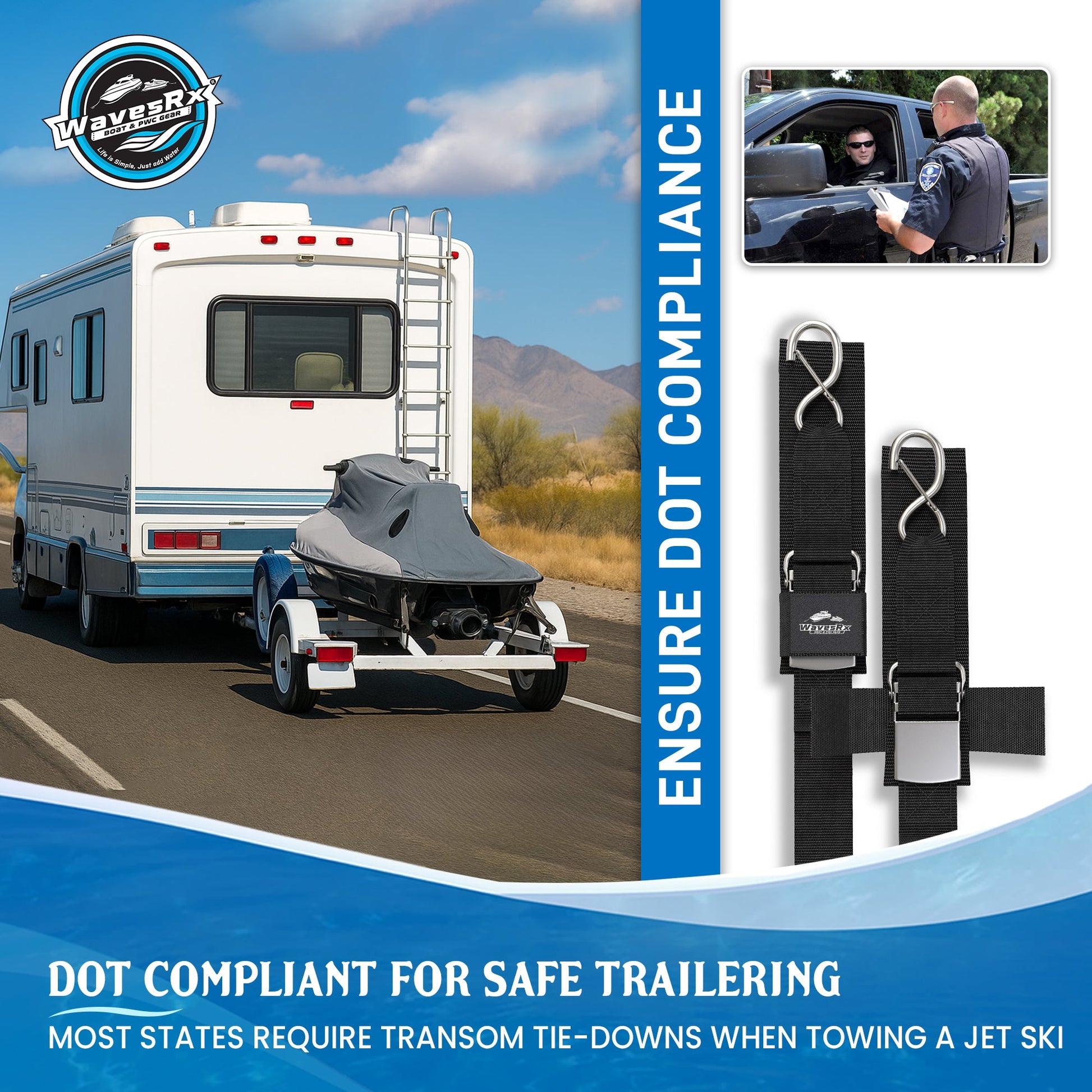 DOT COMPLIANT FOR SAFE TRAILERING - Many U.S. states require transom tie-down straps to secure your watercraft during transport, or may issue citations for an unsecured load.