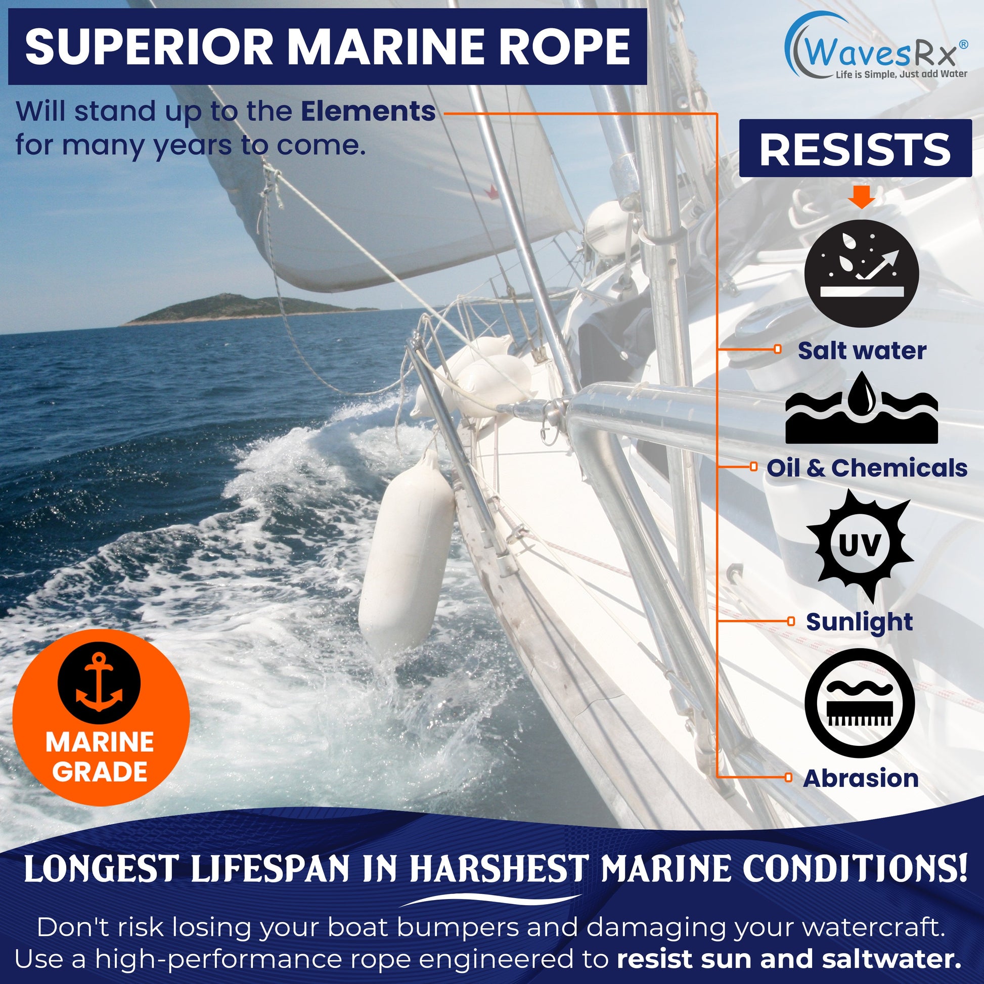 - LONGEST LIFESPAN IN HARSHEST MARINE CONDITIONS! - Don't risk losing your boat bumpers and damaging your watercraft by using a cheap rope that was not engineered to resist sun and saltwater. Get the most durable and long-lasting marine rope from WavesRx.
