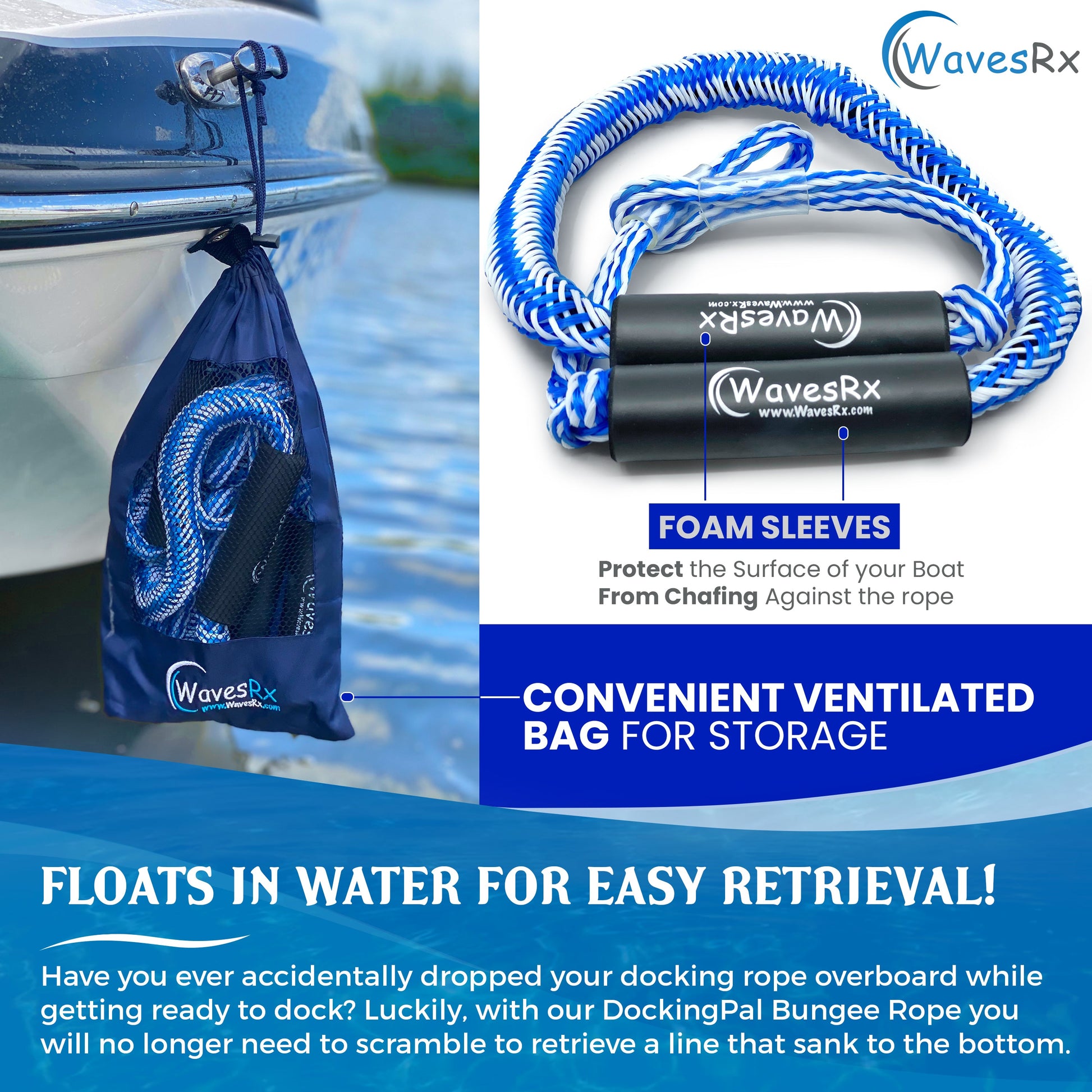 - FLOATS IN WATER FOR EASY RETRIEVAL! - Have you ever accidentally dropped your docking rope overboard while getting ready to dock? Luckily, with our DockingPal Bungee Rope you will no longer need to scramble to retrieve a line that sank to the bottom.