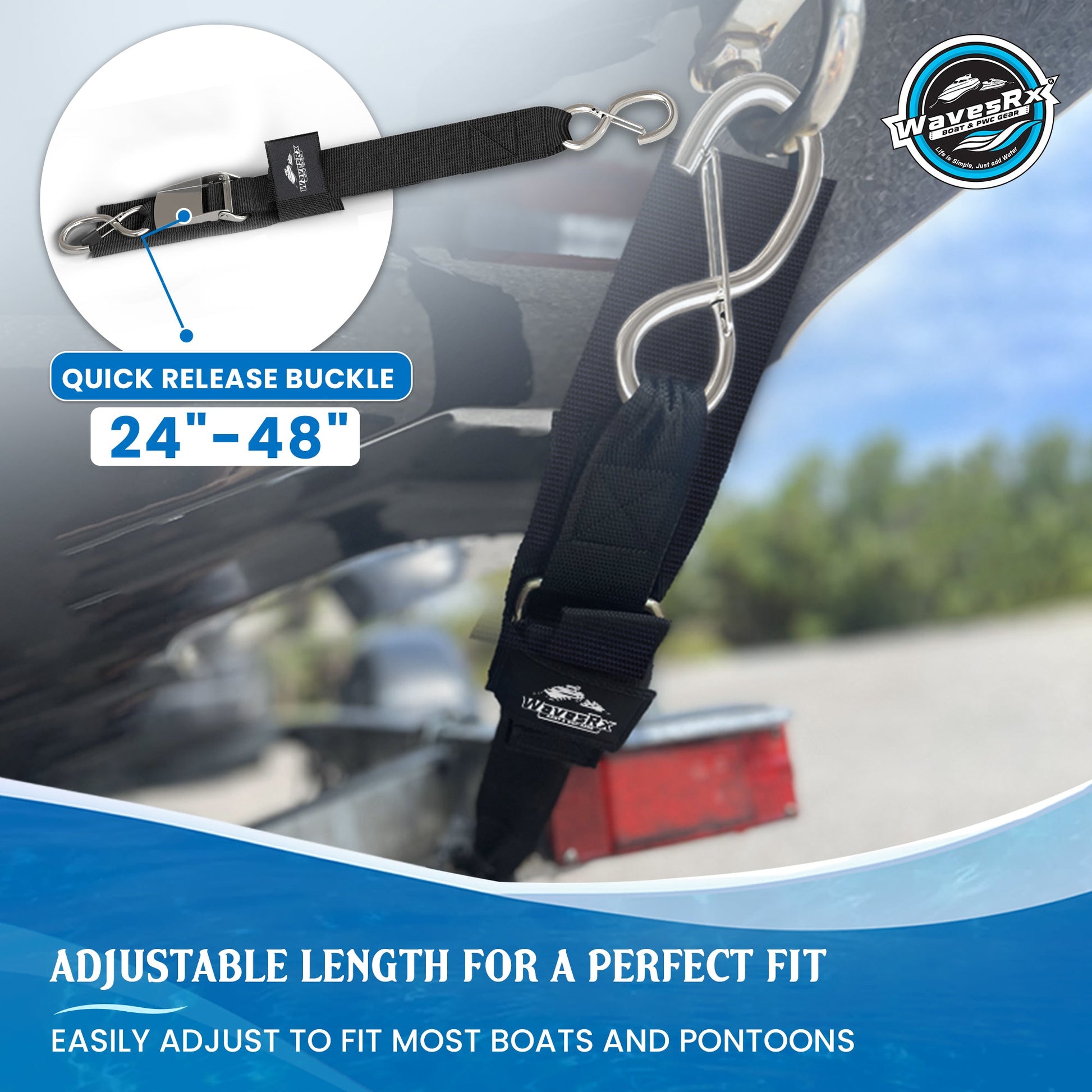 DOT COMPLIANT FOR SAFE TRAILERING - Many U.S. states require transom tie-down straps to secure your watercraft during transport, or may issue citations for an unsecured load.