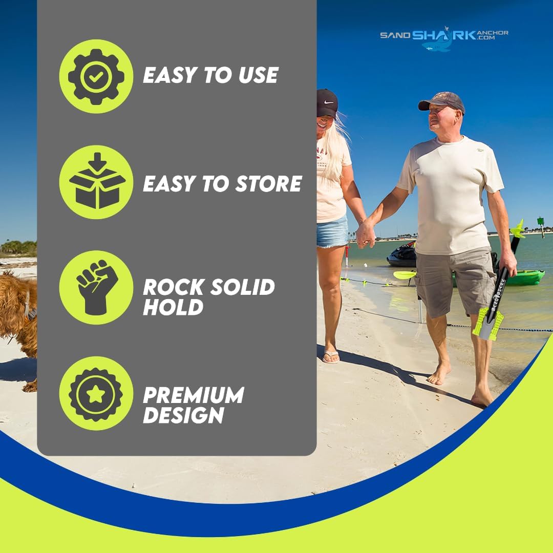 • Quick Setup: Say goodbye to tangled ropes and difficult setups. The Super-Sport Anchor simply screws into the sand and holds your boat or jet ski securely in place.