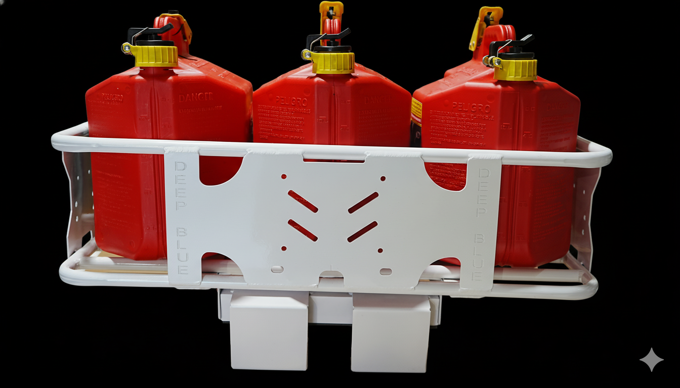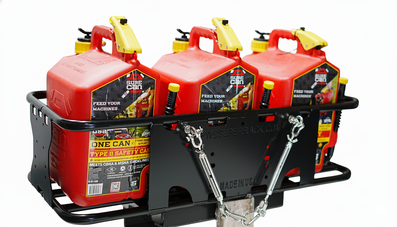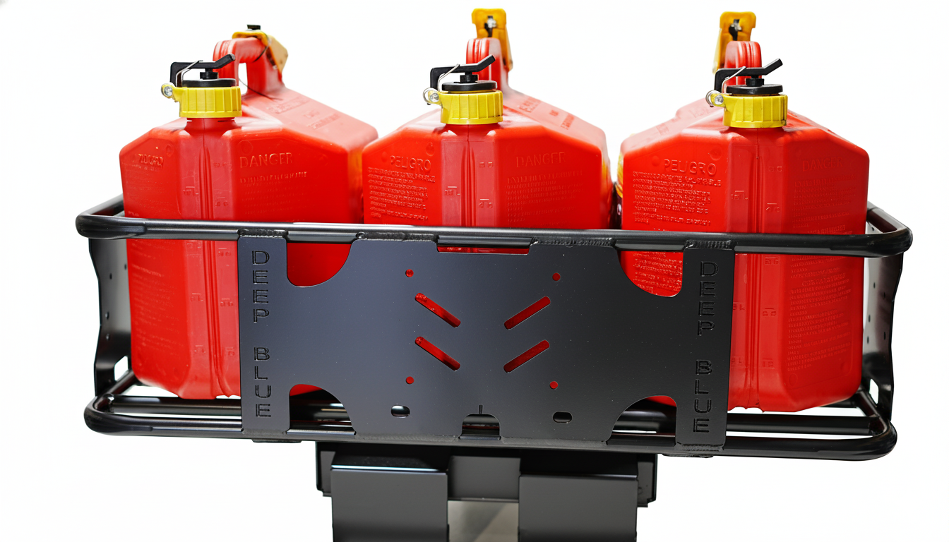 With this TRIPLE Rack, you can carry three 5-gallon gas tanks, two 5-gallon gas tanks and a soft cooler, or many other combinations tailored to your ride.