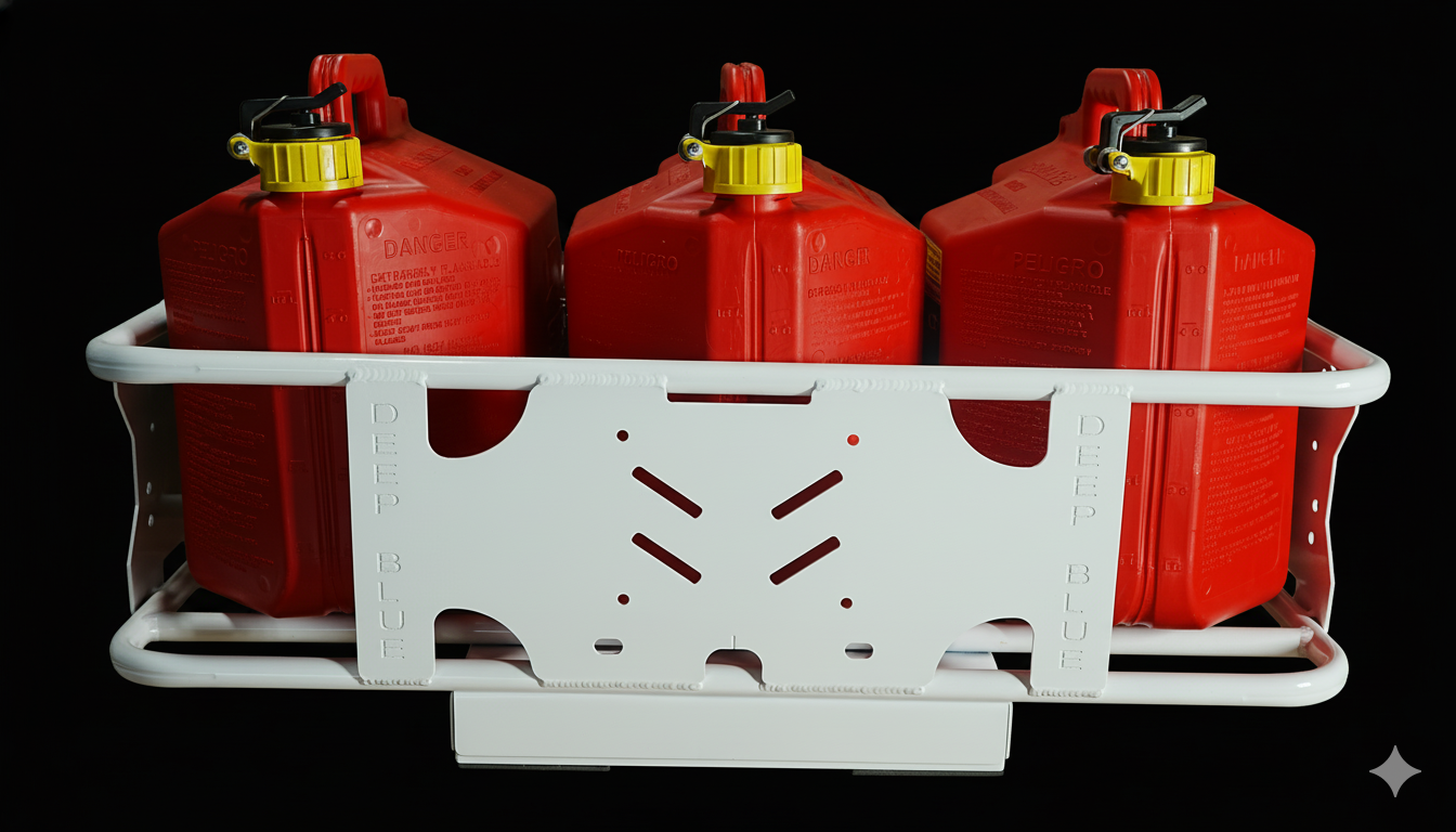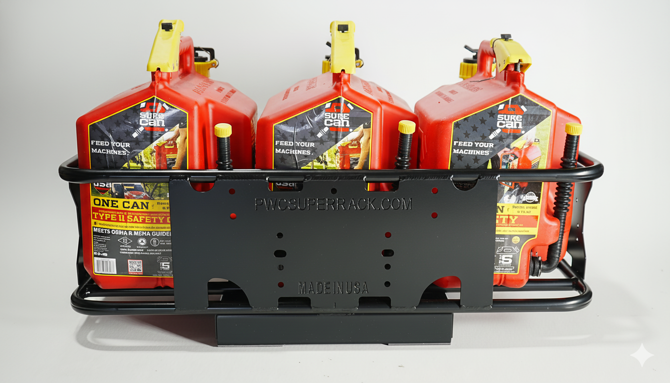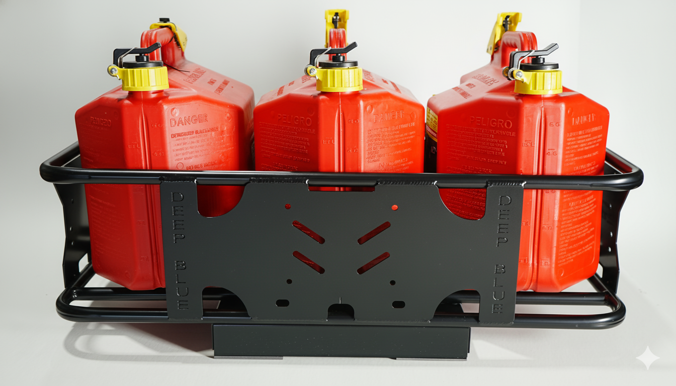 With this rack, you can carry two 5-gallon gas tanks and a cooler simultaneously or three 5-gallon gas tanks.
