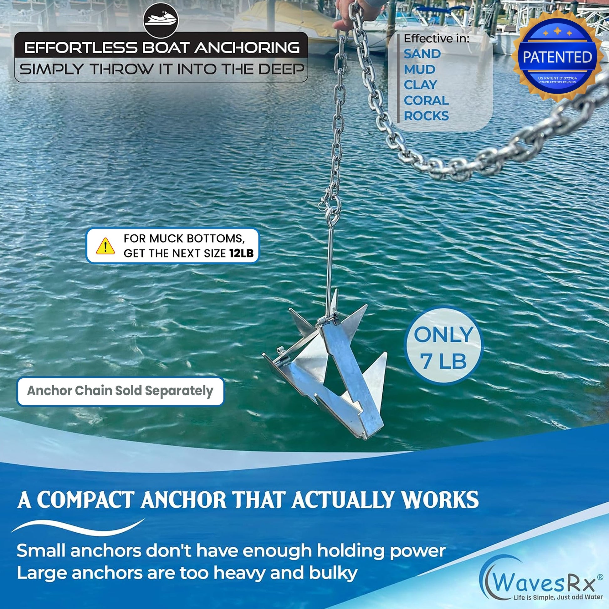 - NEED A COMPACT ANCHOR THAT ACTUALLY WORKS? - We've tried them all: Box Anchors, Grapnel Anchors, Fluke Anchors, Nylon Anchors, Sand Bags. They are either too bulky or they just don't hold well enough. That’s why we developed the WavesRx TriAnchor as the Ultimate Solution to Simple and Effective Anchoring.